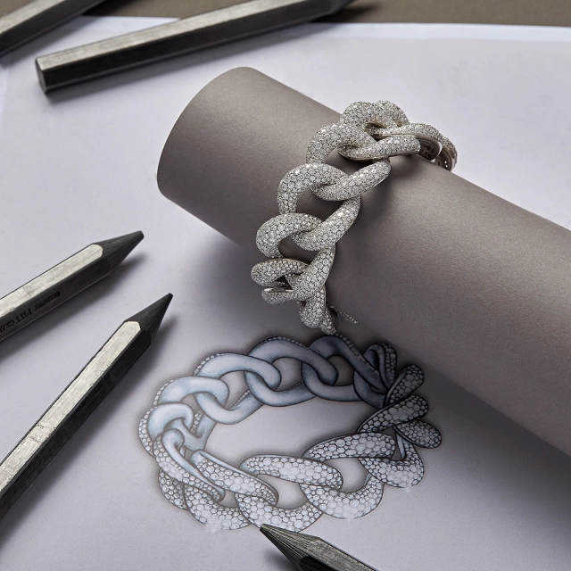 Our Art department is monitoring every stage of the jewelry design process, from the initial sketch to selecting the gemstones. Every model, produced according to the highest quality standards like all the brand’s collections, will remain a unique piece.
